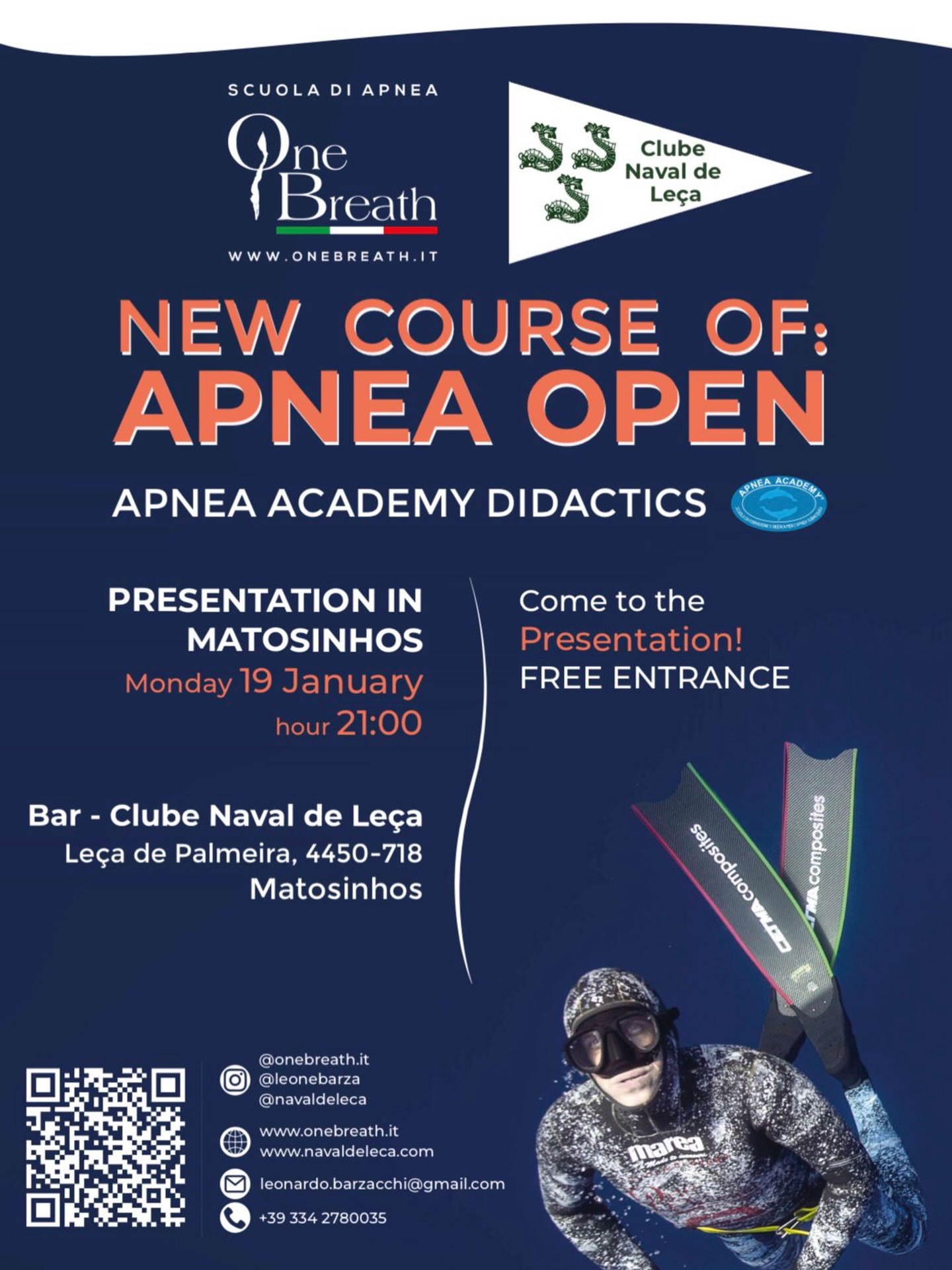 É com enorme satisfação que anunciamos a nova parceria entre Clube Naval de Leça e a Scuola di Apnea One Breath.